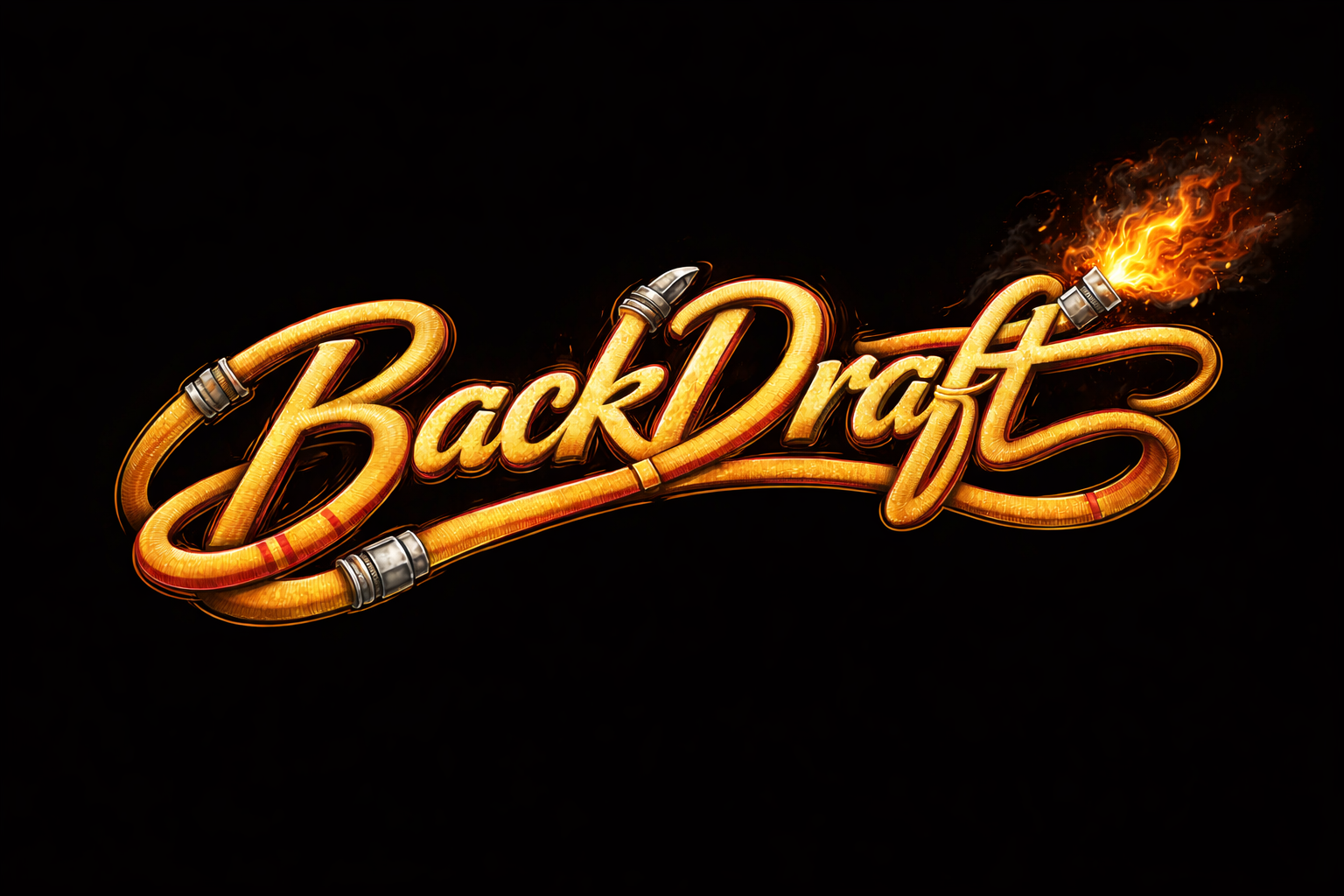 BackDraft Logo Hoodie — Retro Flame Script Pullover